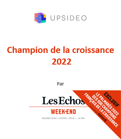 Nous sommes fiers de trouver UPSIDEO dans le classement « Les champions de la croissance 2022 » des Echos Week-end ; avec un taux de croissance du chiffre d’affaires annuel moyen de plus de 23% entre 2017 et 2020.